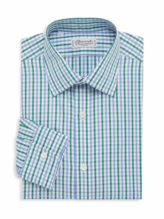 Made in France, this cotton button-up flaunts a multicolored gingham print.