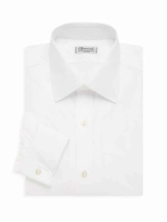 Crafted of jacquard, this classic dress shirt is finished with a point collar and button cuffs.