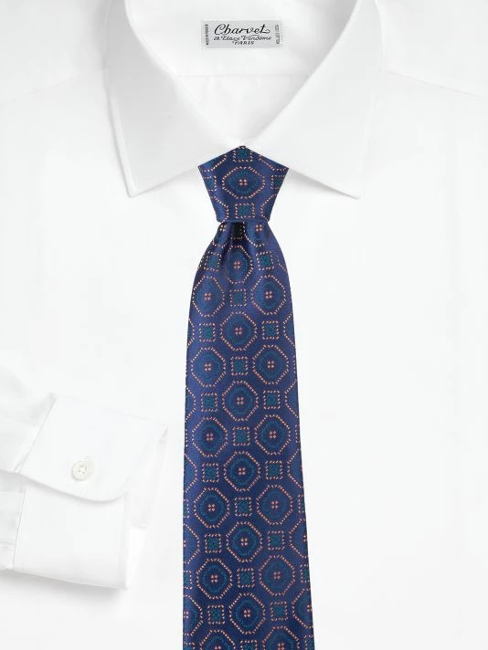 A distinctive art deco pattern decorates this necktie woven from pure silk.