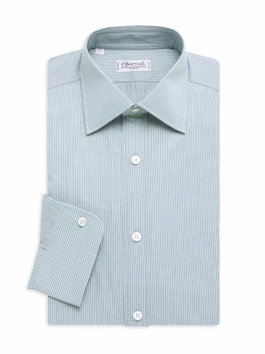 Woven in premium cotton with a mini windowpane check finish, this classic collared dress shirt is tailored in a crisp button-down silhouette.