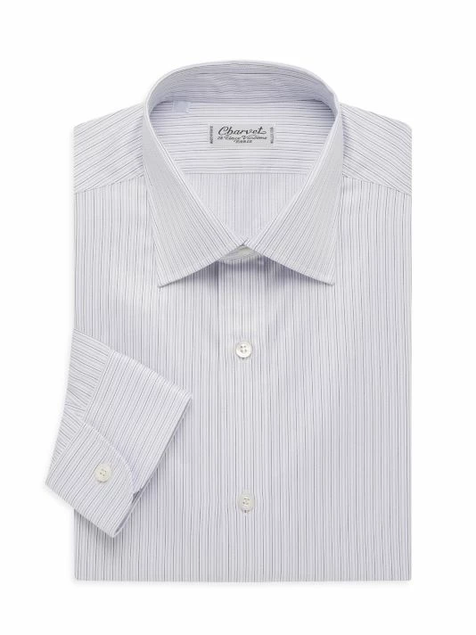 Crafted of cotton, this classic button-front shirt by Charvet is adorned with a striped pattern.