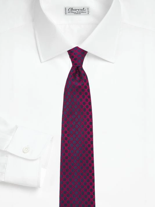 A wardrobe staple, this woven silk tie features a geometric checkered pattern.