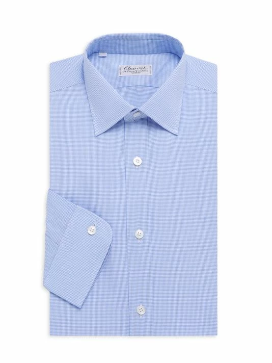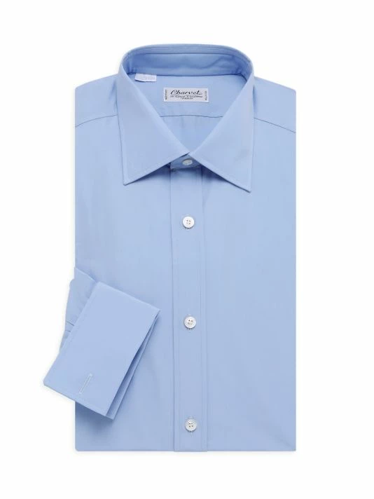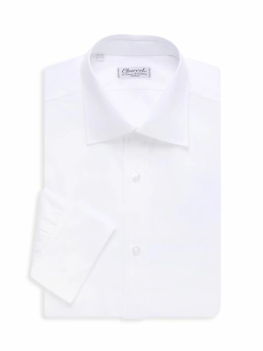 Woven in premium cotton, this classic collared dress shirt is finished in a tailored button-down silhouette.
