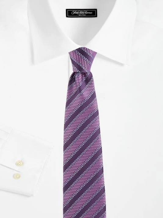 Luxe silk tie with a bold striped design adds polish to your workwear look.