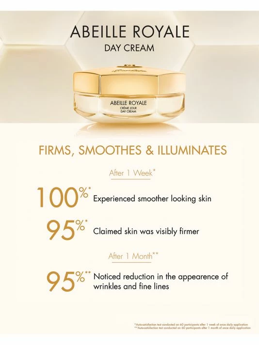 Pure honey from the black bee on Ouessant Island, a UNESCO Biosphere Reserve with an ecosystem that is free from pollution, pesticides, and parasites, and the refuge of a unique species of black bee. On the island, the bee produces pure honey with exceptional properties and is rich in polyphenols. Guerlain Exclusive Royal Jelly: rich in exceptional nutrients and vitamins to nourish the skin.