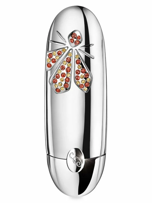 A limited edition customizable double mirrored lipstick case designed by Lorenz Baumer, adorned with a rhinestone bee— alongside Guerlain’s best-selling signature red lipstick shade 214. A $323 Value. Made in France.